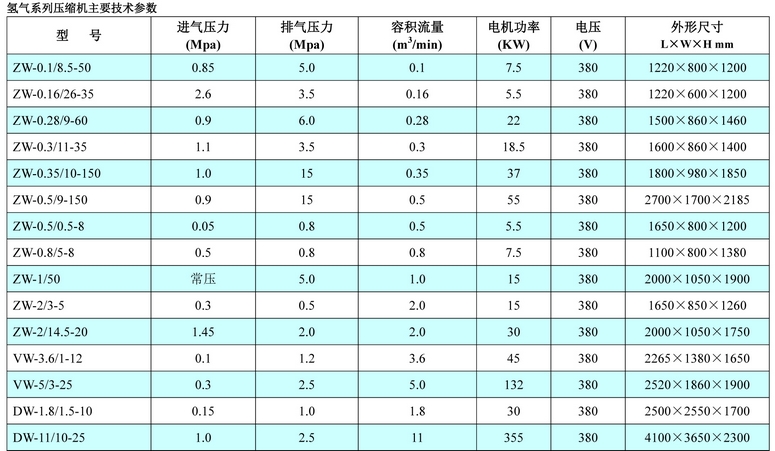無(wú)油潤(rùn)滑氫氣壓縮機(jī)為往復(fù)活塞式。該系列壓縮機(jī)品種多,規(guī)格全,廣泛用于制氫系統(tǒng)、氫氣充瓶、苯加氫、焦油加氫、催化裂化等工藝。該系列產(chǎn)品設(shè)計(jì)新穎、布局合理、噪音低、運(yùn)行平穩(wěn)、操作方便、安全可靠等特點(diǎn)。另外,可根據(jù)客戶(hù)的不同需求,設(shè)計(jì)制造不同排量和壓力的氫氣壓縮機(jī)。