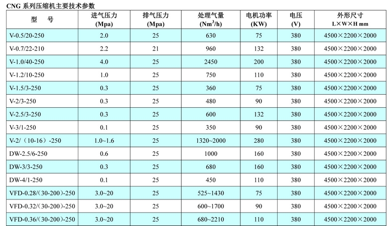 CNG壓縮機為往復活塞式壓縮機,是天然氣加氣站必配的設(shè)備。該系列壓縮機設(shè)計為整體撬裝式,結(jié)構(gòu)緊湊,運行平穩(wěn),安裝和維護方便。